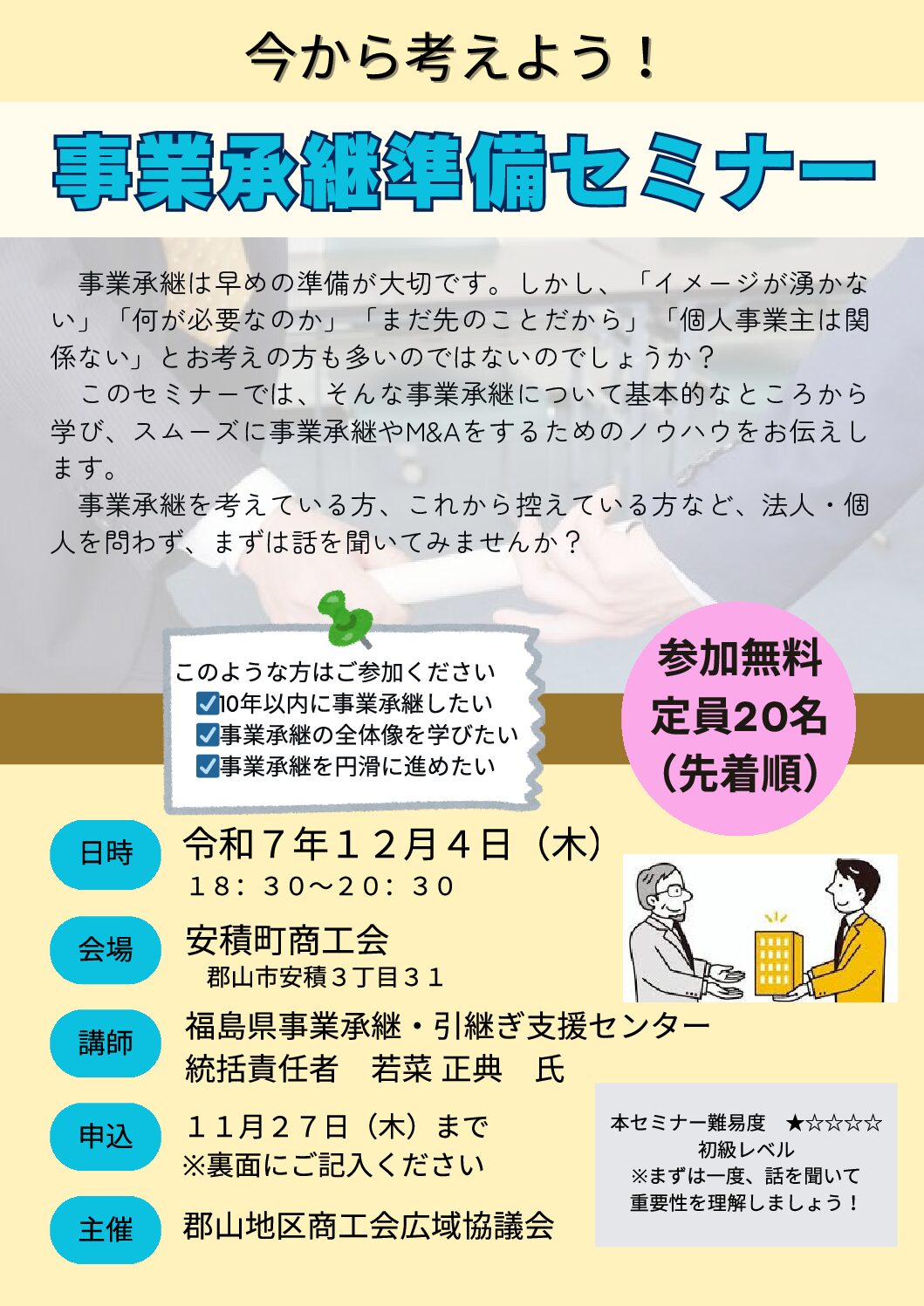 【事業承継準備セミナー】を開催します