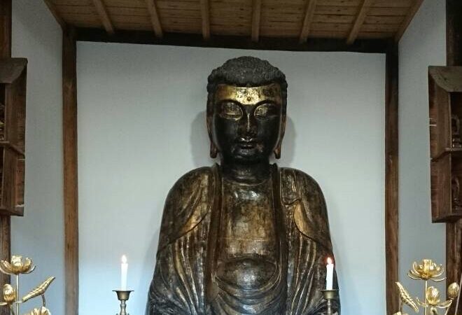 東光寺にある、寄木造・漆箔仕上げの丈六阿弥陀仏で像の高さが約3mの東北地方最大の坐像です。